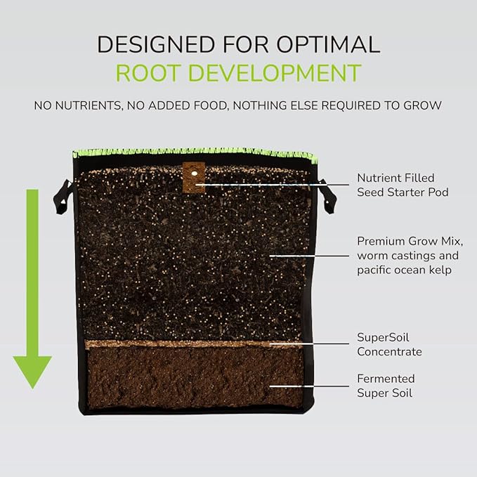 - PREMIX GROW POTS: Everything above is carefully packed into our PreMixed pots. Our team of professional gardeners hand-tills each layer of soil and then carefully adds it into the pots layer by layer. Our PreMix pots currently come in 3, 5, and 7 gallon premium fabric pots. The pots are then covered and vacuum sealed to stay fresh for months. The best nutrient solution there is!
