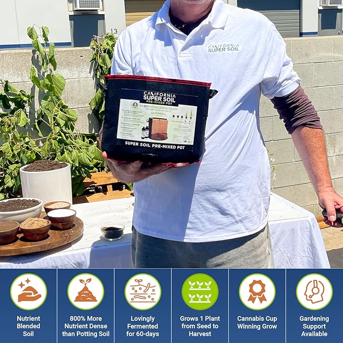 - NUTRIENT INFUSED SOIL: Our soil is some 800% more nutrient dense than simple potting soil. We have included all the nutrients you need for your entire grow within our soil. California Super Soil is primarily a heavily nutrient infused soil that removed the need to add external nutrients to your grow. Our Super Soil delivers a perfect turn-key grow solution for the most demanding of plants.