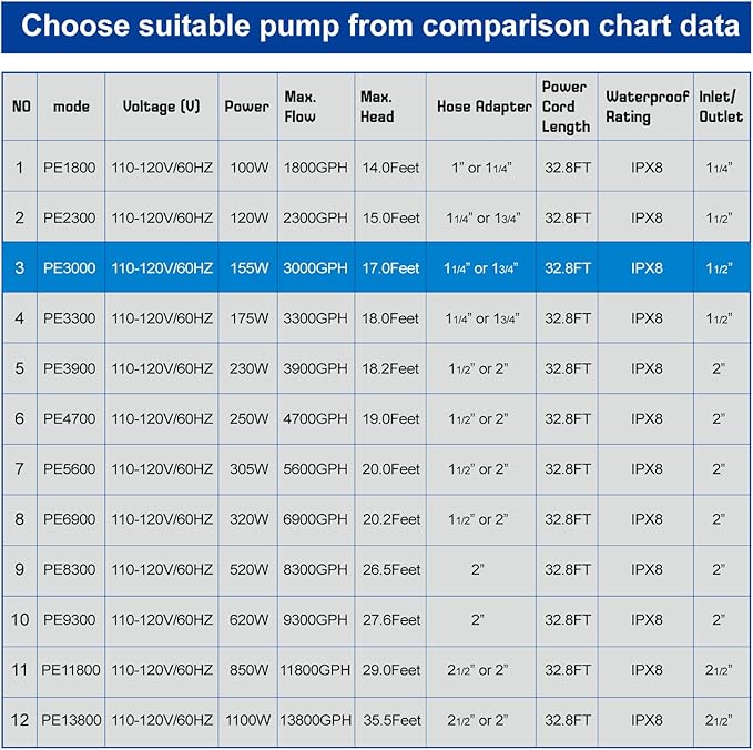 - 【Cuter &Strong Water Flow】-AS CLEAN AS “ SPIRIT LIVES IN US"-Smarter &Powerful & QUIET pond pump, as "In quietness is your strength": 3000-gph pond water-fall pump submersible outdoor is very powerful with 3000gph high flow and 17 feet high lift.It can move a large volume of water to build water flow of waterfall or fountain in your yard. although pond water-fall pump submersible outdoor is powerful, doesn’t make much noise at all, when pumping except for the soothing sound of splashing water.