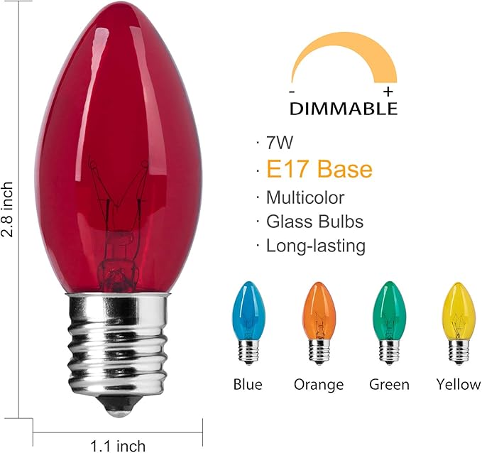 - 100+4 light bulbs included: C9 E17 base light sockets