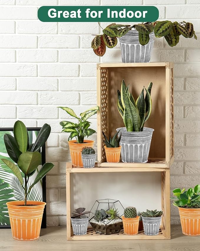 - 【Size of Metal Pots】There are 6pcs metal planters in a package, Topper opening diameter 7.1 inch, bottom diameter 5.5 inch, barrel high 7.3 inch.