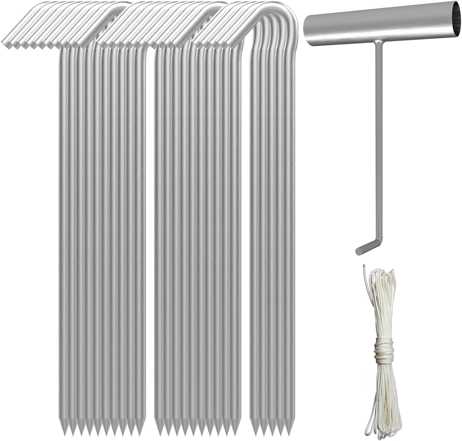 AAGUT Tent Stakes, Tent Stake Metal Garden Edging Fence Hooks Yard Camping Stake Heavy Duty Galvanized 9 Inch (9 Inch Tent Stakes KIT, 25)