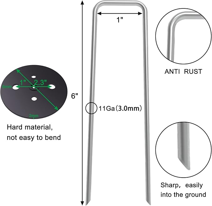 - 【50 Pack Vapor Barrier Stakes】-- Set of 50, full 6 Inch length 11 gauge(3.0mm) Landscape staples. MySit Garden Staples are made of steel and used premium hot-dip galvanized process. 3mm diameter heavy duty ground stakes with galvanized finished for superior rust-resistance, making it great for prolonged outdoor use.