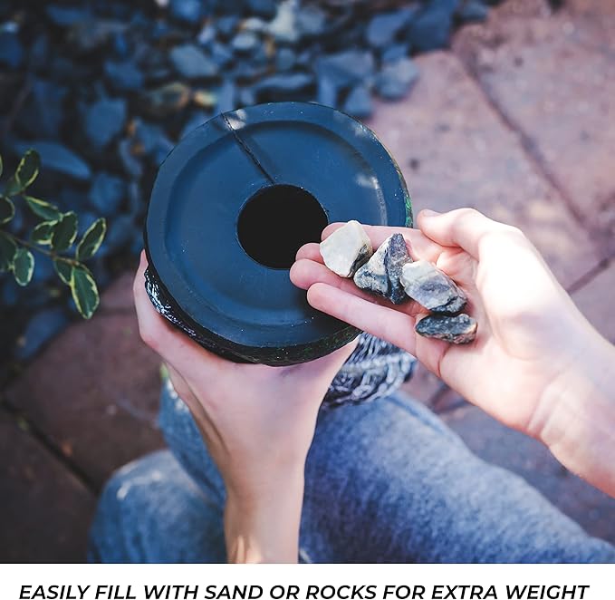 - INSTRUCTIONS - 10" tall. Fill the base with sand or gravel for proper weight, or place the owl on a stick or pole into its hollow bottom for more stability