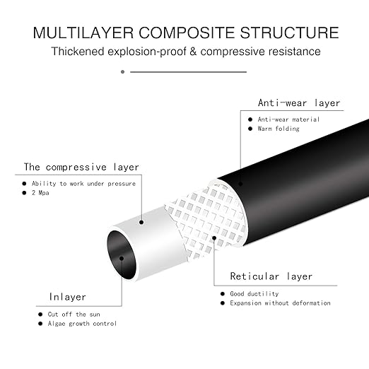 - 【ANTI-BURST DESIGN FOR MAIN LINE】: 1/2'' Main tubing is composed of three layers, with strong pressure resistance and anti-burst. 1/4'' branch tubing is also thickened, and the thickened design can make the whole irrigation system work smoothly even at the level of 35psi , and the accessories will not pop out.