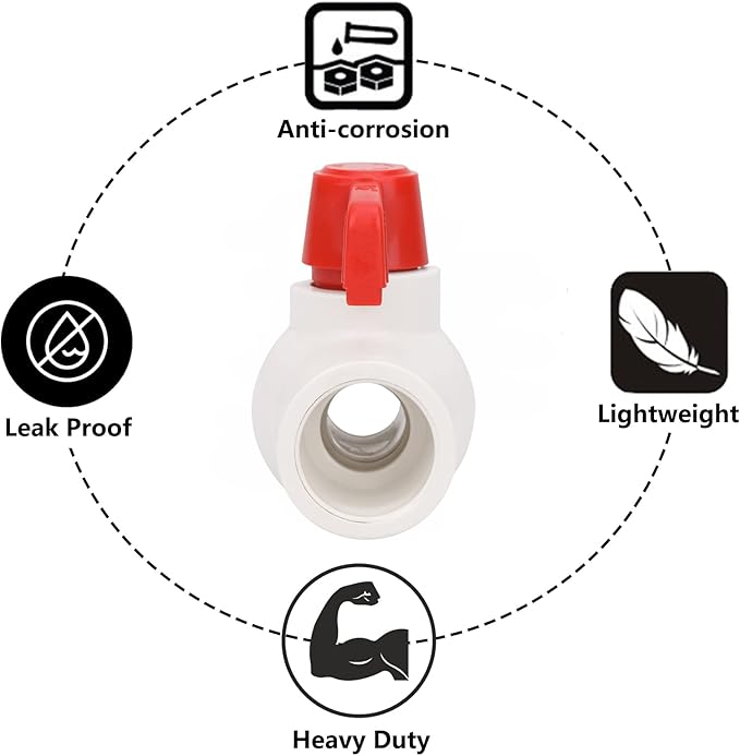- 【Material】6pcs Heavy Duty 1/2 Inch PVC Ball Valve made of high-quality PVC, high-impact strength, resistant to frost and corrosion, long service life.