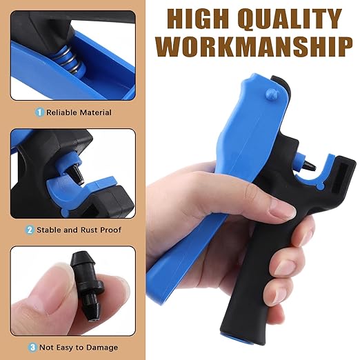 - 🚿 [Drip Irrigation Tubing Hole Punch]🚿 ---------- The drip irrigation hole punch tool is designed for drip irrigation pipe punch and 1/4 fitting insertion; hold the handle of the drip irrigation pipe punch, clamp the drip irrigation pipe and press gently until the drip irrigation pipe is pierced; the punch tool is made of high quality plastic and metal, practical and durable, not easy to rust and damage, and can be used for a long time.