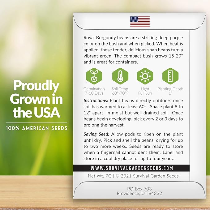 Survival Garden Seeds - Royal Burgundy Bean Seed for Planting - 3 Packs with Instructions to Plant and Grow Stringless Purple Bush Beans in Your Home Vegetable Garden - Non-GMO Heirloom Variety