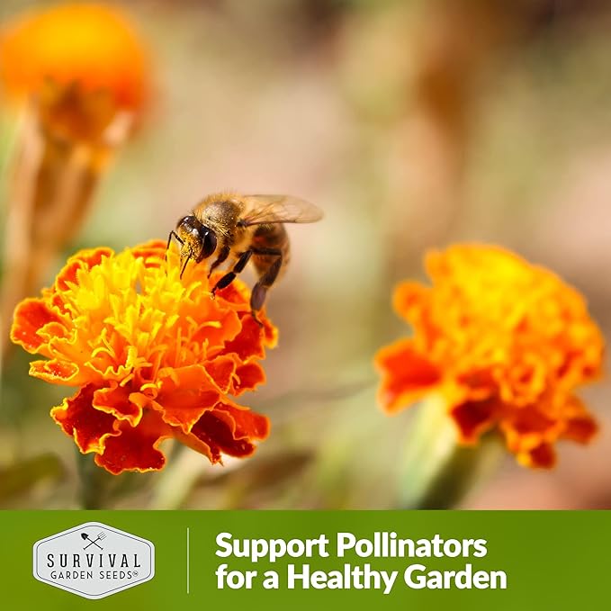 Survival Garden Seeds - French Sparky Marigold Seed for Planting - 5 Packs with Instructions to Plant and Grow Large Tagetes Patula Flowers in Your Home Vegetable Garden - Non-GMO Heirloom Variety