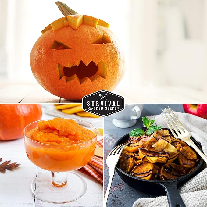 Survival Garden Seeds - Small Sugar Pumpkin Seed for Planting - 3 Packs with Instructions to Plant and Grow Pie Pumpkins in Your Home Vegetable Garden - Non-GMO Heirloom Variety