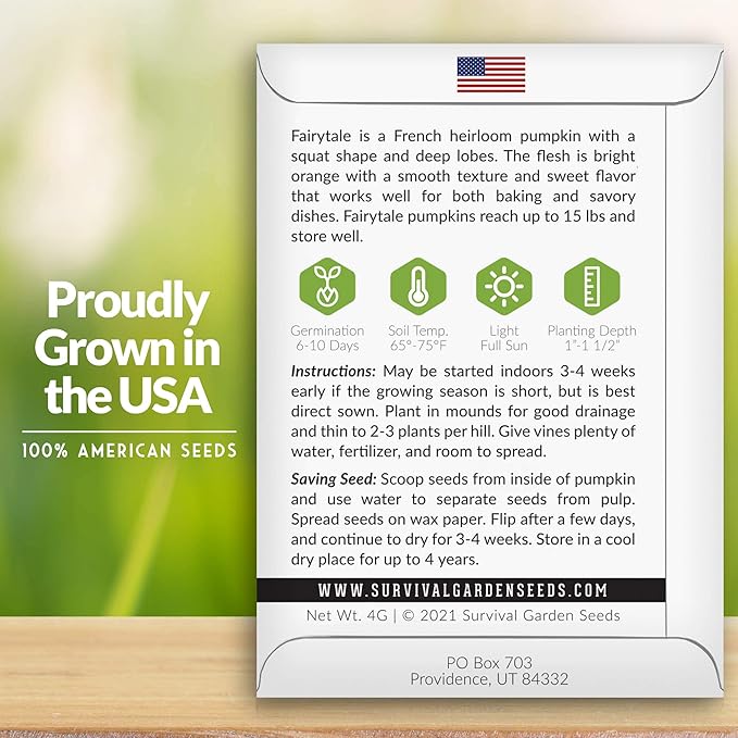 Survival Garden Seeds - Fairy Tale Pumpkin Seed for Planting - 5 Packs with Instructions to Plant and Grow Pumpkins in Your Home Vegetable Garden - Non-GMO Heirloom Variety