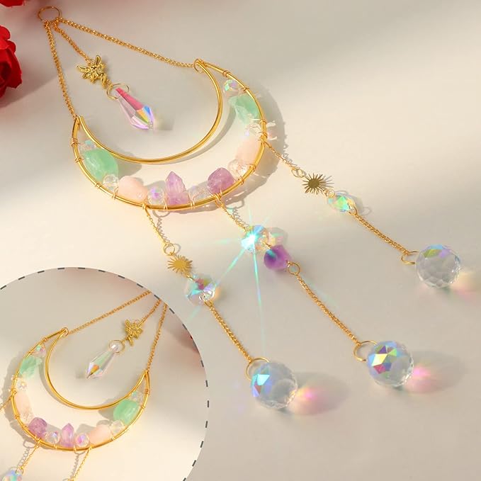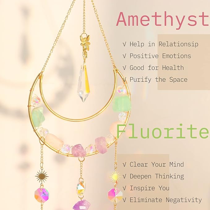 Moon Amethyst Crystals Suncatcher Hanging Windows, Healing Amethyst Fluorite Crystal Decor for Home, Gift for Christmas Birthday Valentine Mothers Day and More (Style 3)