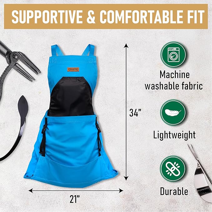 - Multifunctional Gardening Apron - Grampa's garden apron acts like an extra pair of hands, making it versatile and a great gift for gardeners. Whether you're harvesting, weeding, gathering or planting, our apron will help you get the job done in your yard or home.
