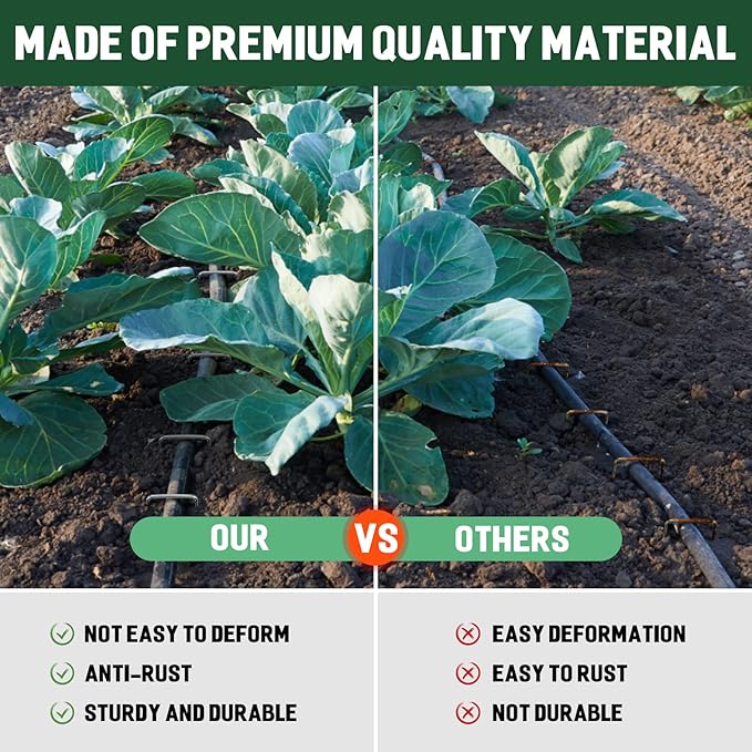 - 【Numerous uses】Landscape pins can secure garden fabic, ground cover, animal fence, weeb barrier fabic, electric wires, raising bed, vegetable bulb, ect.