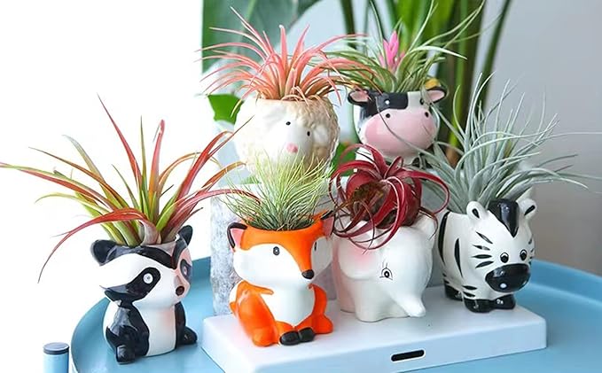 - Perfect Present Ideals: Animal plant pots, mini design in 6 different cute looking, shape, Perfect for decorating bedroom, living room, balcony, bathroom, windowsill, dinning table, kitchen, desktop, office. Adorable dork expression bring you a unique atmosphere and make your air plants, succulents or other little baby plants more funny, vivid and enjoyable. Great cute planters small planting pots choice to be a present for friends and family who will be made to laugh!