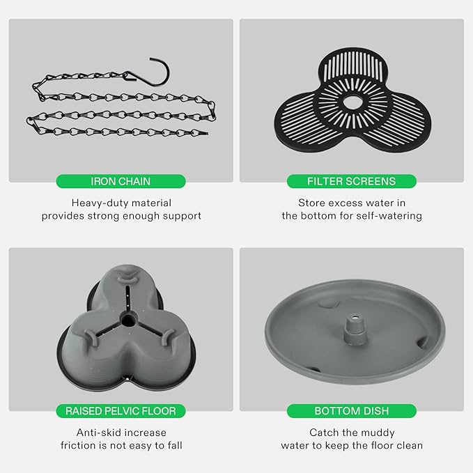 - Flow Design: The water filtration system from top to bottom can effectively save and retain moisture; Meanwhile, the bottom is equipped with a bottom dish that will not stain the ground