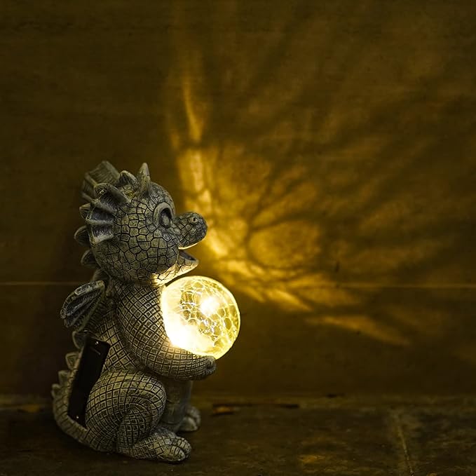 Garden Decor Solar Statues for Mom Grandma Birthdays for Women Sister Wife Lady - Front Patio Balcony Yard Art Lawn Ornaments Porch Outdoor Outside Decorations (Dragon)