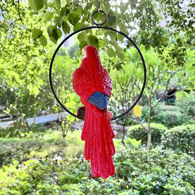 Lifelike Parrot Garden Statues Hanging Decor Ornaments Figurines Sculpture for Patio Lawn Yard, Blue Tail (Red Tail)