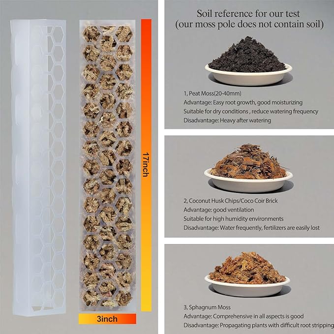 - [Perfect an Ideal Growth Environment] We strongly suggest using sphagnum moss or Coconut soil or soil mix with our plant sticks for best effect because it can provide water and micronutrients for creeping plants for a long time. Besides, our product will not end up rotting even if it stuck inside the soil for too long.