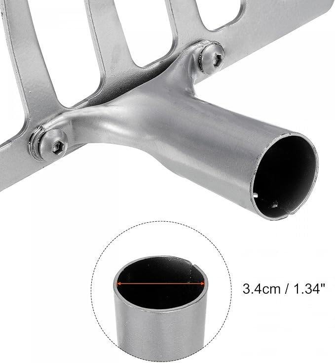 - Easy to Install: The rake handle(not include) is easy to install, choose a round handle of suitable size, insert the head into the rake head, fix it with nails, and it can be used. The rake connection part are fixed by screws, which are firm and not easy to loosen.