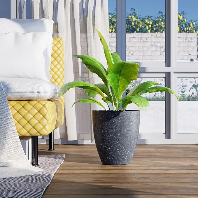 QCQHDU Plant Pots Set of 2 Pack,10 Inch Plant Pot for Indoor and Outdoor Plants with Drainage Hole,Flower Pots Modern Decorative Planter for Garden Plants (Black)