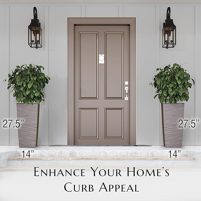 Mueller M-Resin Heavy Duty Tall Planter, Indoor/Outdoor Grande Plant, Tree, Flower Pot, 2-Piece Set, 27.5”, Modern Design, Built-in Drainage, Mocha