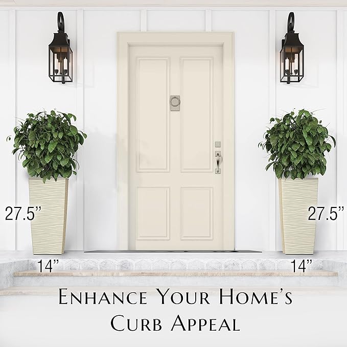 Mueller M-Resin Heavy Duty Tall Planter, Indoor/Outdoor Grande Plant, Tree, Flower Pot, 2-Piece Set, 27.5”, Modern Design, Built-in Drainage, Beige
