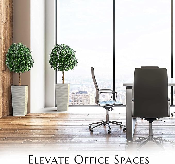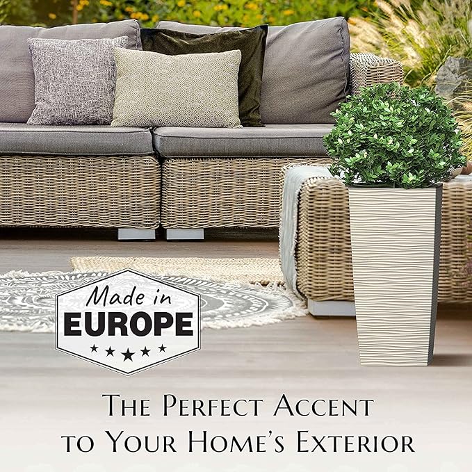 Mueller M-Resin Heavy Duty Tall Planter, Indoor/Outdoor Grande Plant, Tree, Flower Pot, 2-Piece Set, 27.5”, Modern Design, Built-in Drainage, Beige