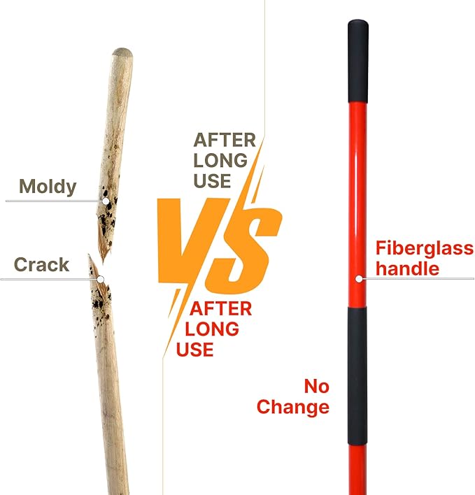 - Special Handle: Gardening shovel with a sturdy fiberglass handle that offers 2 non-slip areas that become sticky when wet to ensure a firm grip in all conditions.