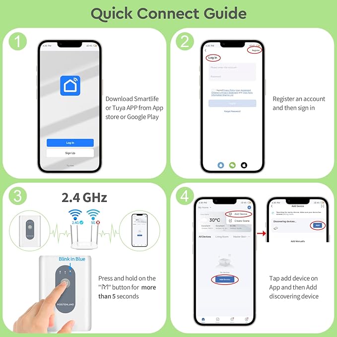 - Kindly Note: Only 2.4GHz WIFI can be connected ( not support 5G). For dual-band routers, please enable the 2.4GHz WiFi band independently, and the name is different from the 5GHz WiFi band. Available mobile phone system version: Android 5.0 or above, IOS10.0 or above