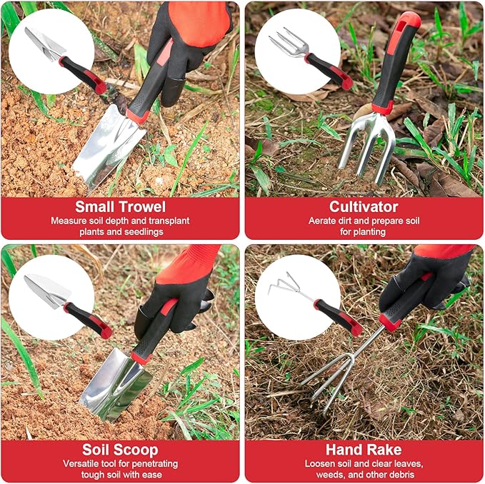 - 【Christmas Gifts for Women and Men】Christmas is coming. Are you still looking for a gift for your mom and dad? Our premium garden tools set is a great choice for you now! And we also packed the gardening tools with a great package. And it is a well-packed and has a giftable package for your parents or grandparents. There is no double that they will be so satisfied with their gardening gift if you choose our Gardening tools set as Mothers Day gift or Fathers Day gifts.