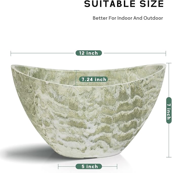 LaDoVita Plant Pots with Drainage Holes, 12 Inch Oval Planters for Indoor Plants, Plastic Flower Pots Outdoor, Set of 2 Pack, Green