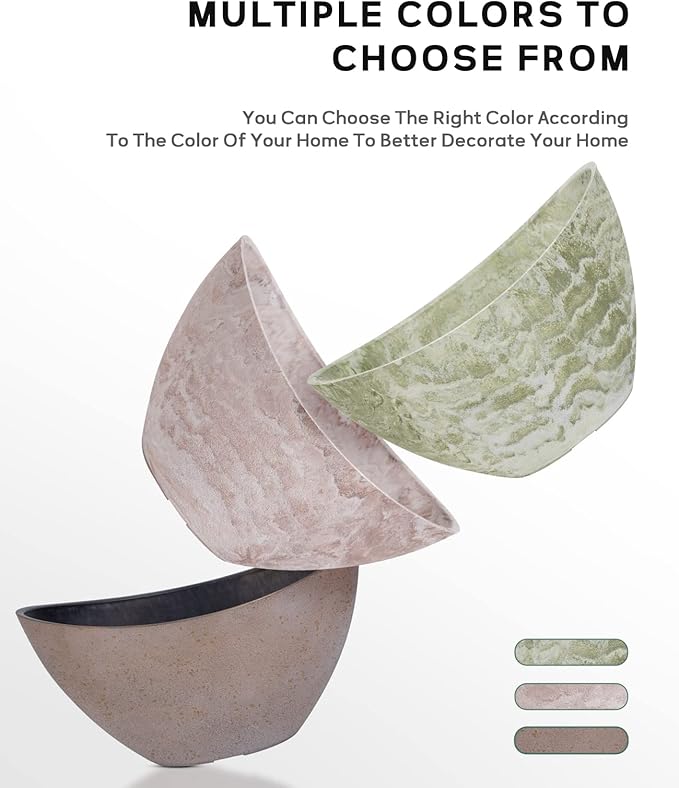 - 【Durable and Lightweight】 Made of durable and eco-friendly ABS material, this flower pot is lightweight and easy to move. These containers won't crack or discolor from extreme cold and heat. Can be used freely indoors and outdoors. A saucer (not included) is required for indoor use.