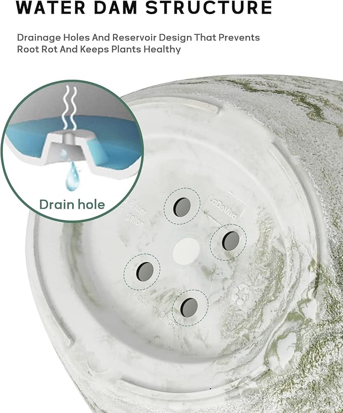 - 【Drainage Holes and Reservoirs】 Plastic flower pots have 4 drainage holes to allow excess water to flow out easily and avoid overwatering. The bottom cistern of these pots is designed to store excess water to provide constant moisture to the plant, helping to prolong the life of the plant.