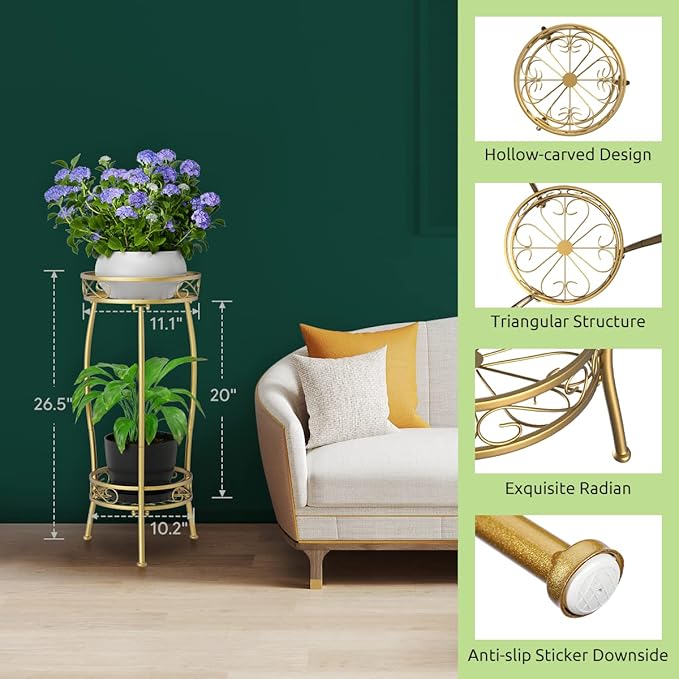 - ✅ ASSEMBLE AND HEIGHT: Simple structure and explicit instruction make the plant shelf easy to assemble. You may finish it within 5 minutes. We also pack a wrench to help you reinforce the plant stand. Holds pots up to 11.68 inches. The total height is 26.5 inches, and the second shelf is 20 inches high. Perfect for your tall plants and flowers.