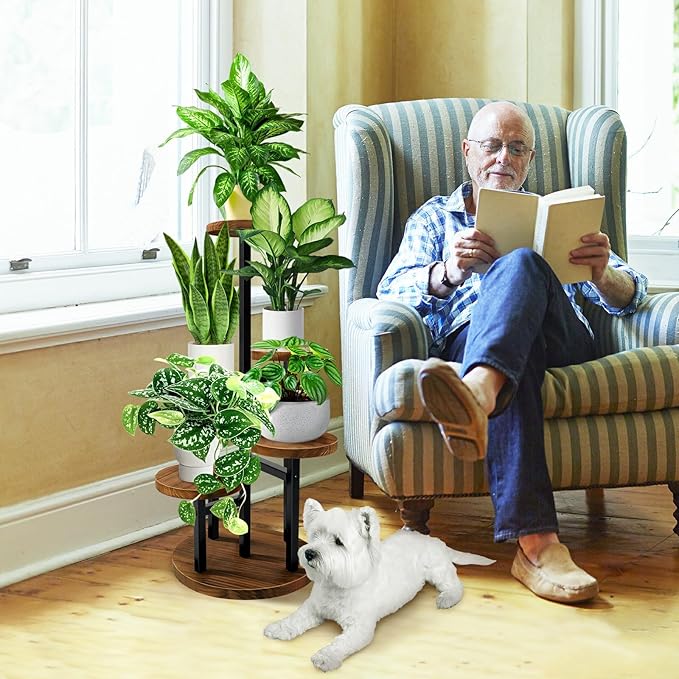 - 【Save space & Decorate your room】 With 5 Tier Plant Stand you can fit more plants in a small corner space, which not only has enough space to display your indoor plants, but also helps them get more sunlight to thrive. With an elegant layout, the plant stand can be a lovely decoration for your room, suitable for living room, bedroom, office, window, patio and corner.