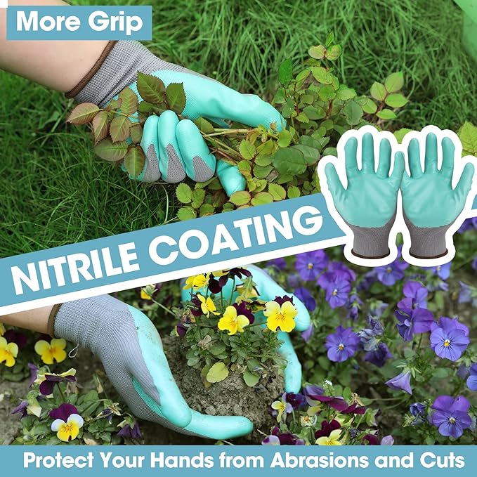 - SOFT GARDEN GLOVES: The nitrile coating on the palm protects your hands from damages when gardening. The garden gloves feel like your second skin with soft nitrile, fitting your hand perfectly. You can get a good grip and have added flex through the finger joints when you use small tools with the gloves