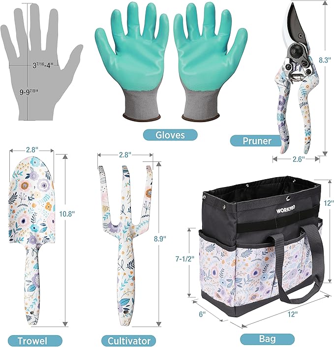 WORKPRO 5PCS Garden Tool Set, Aluminum Heavy Duty Gardening Tool Set with Garden Tool Bag, Outdoor Garden Hand Tools, Garden Gifts