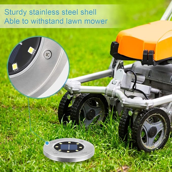 - Waterproof :IP65 waterproof and high strength ABS make it suitable for outdoor use;It can effectively isolate the water and mist;The solar ground lights can work under kinds of weather,like rain,snow,frost,or sleet