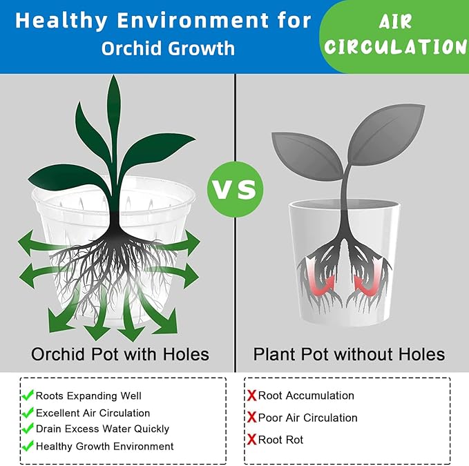 - Side Breathable Slotted - Provide enough oxygen and healthy air circulation for orchid growth, ensure the orchids are growing in a fresh environment.
