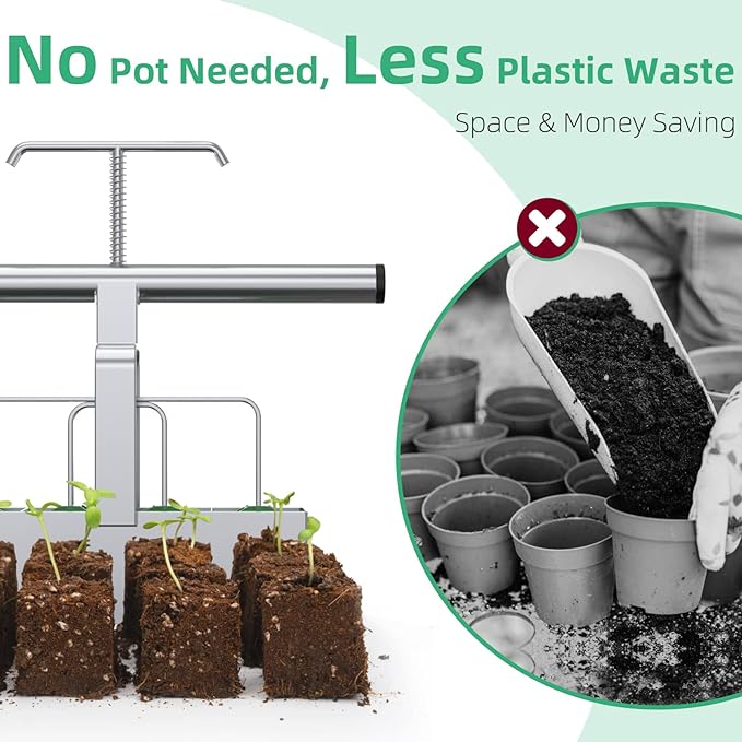 - No Pot Needed - Less Plastic Waste: Grow seeds on 2 inch soil blocks directly, reducing dependence on plastic pots or cell trays, less plastic waste; saving money and no more keep buying disposable seed container