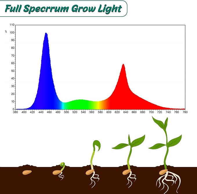 - Smarter Timing System: The 4-in-1 USB smart controller is connected with a timer, which can adjust the light intensity and timing duration.It will memorize the current timing mode including 4H, 8H, 12H and 18H.This alowing seeds to germinate and grow in any season.