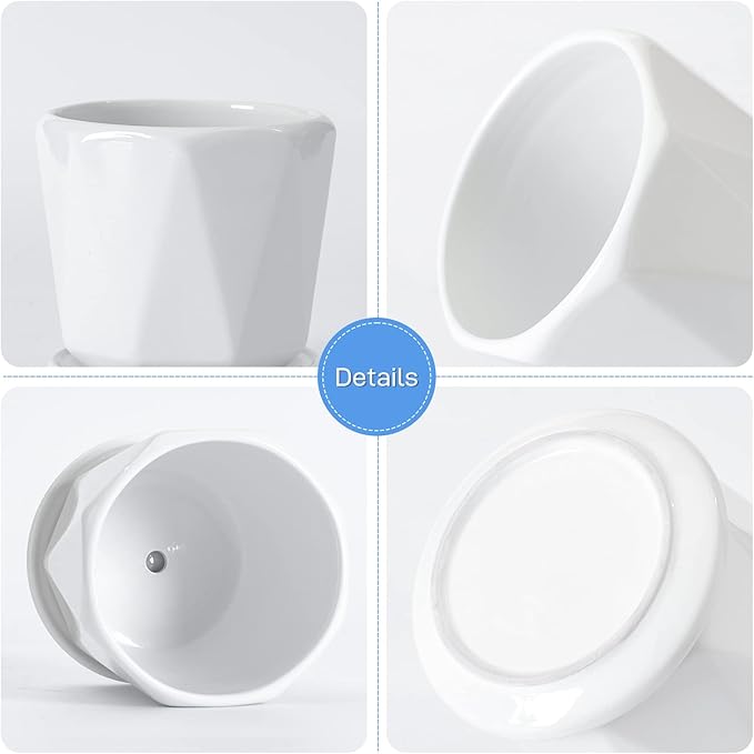 - Size and Dimensions: Set of 3 ceramic white planter pots in different sizes for indoor and outdoor use
