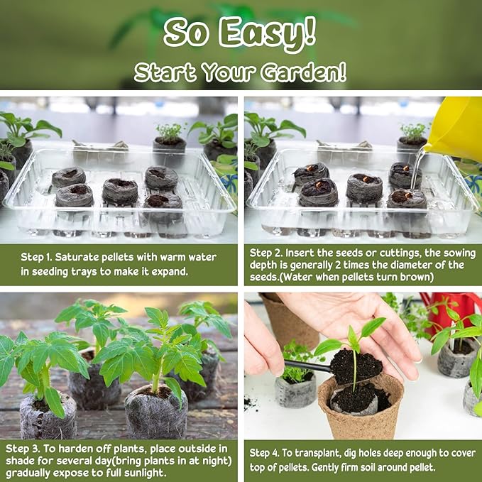 - Wide Application: Seeds starter pellets are great for starting your veggies, garden plants indoors or outdoors, such as tomatoes, peppers, evening primrose, making your seedling work easier and lower cost; You can also plant it with your kids, especially for gardening and growing enthusiasts