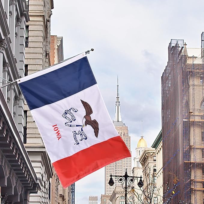 - Strong, Durable: 3x5 IOWA flag outdoor heavy duty, Four Point Needle Fly Hem (4 rows of stitching), 2 Brass Grommets. Fly your big IOWA Flags for outside 3x5 proudly in the rain, snow, high winds and sunshine! The perfect all weathers, Indestructible American IA State Flags for outside banners