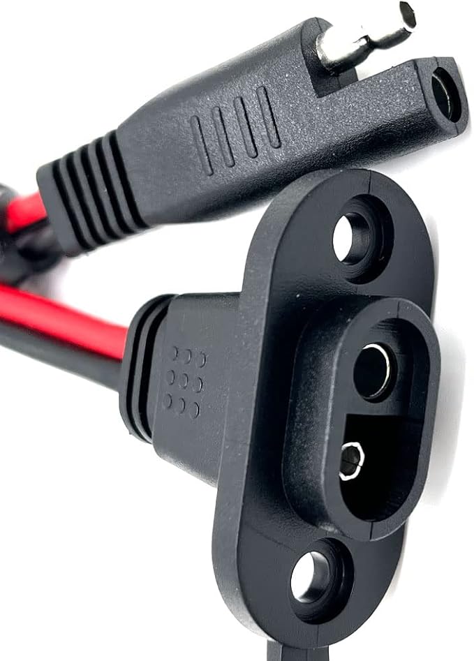 - Cable Specification: 12AWG/2C, 2FT (11.8INCH), Fits for most of sae socket ports, creating a weatherproof solar panel flush mount connector for your SAE power point.