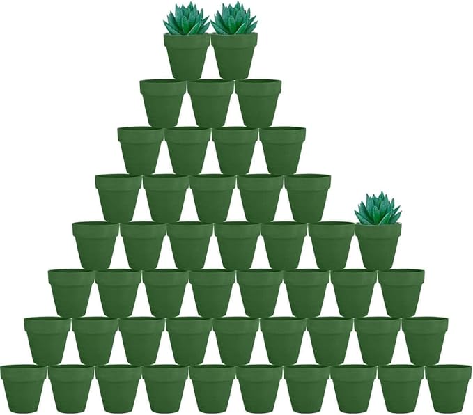 vensovo 48 Pcs 2" Tiny Terracotta & Terra Cotta Pots with Drainage - Green Small Mini Clay Ceramic Pottery Planter Ideal for Indoor/Outdoor Plants, Crafts, Wedding Favors