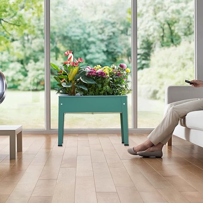 Raised Garden Bed, Elevated Planter Green Metal Plant Box with Legs Standing Garden Stand Drainage Holes Green(Green 24" L x 11" W x 18" H)