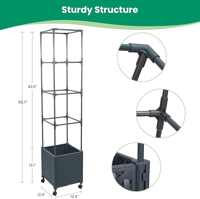 GREEN MOUNT Raised Garden Bed Planter Boxes with Trellis for Climbing Vegetables Plants, 56.7" Tomatoes Planters Outdoor Tomato Cage w/Wheels