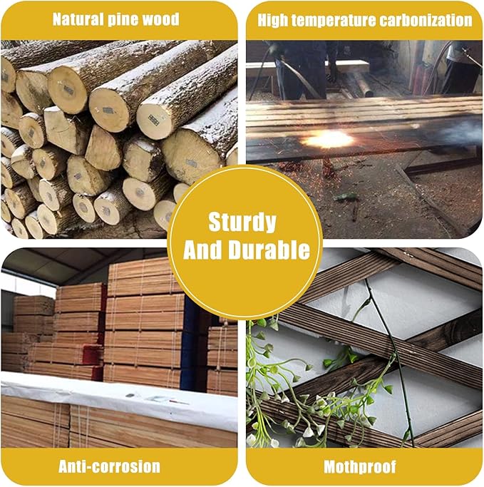 - 【STURDY AND DURABLE】: Wood trellis has been treated with carbonization, Adopt Pine wood production, The grid-like design has better load-bearing capacity long lasting, Its flexible characteristics make it more widely used, garden fence, wall trellis, small animal fence, trellis for climbing plants outdoor.